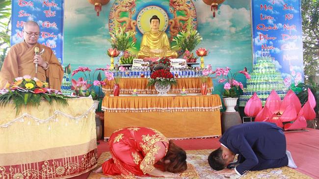 Tại buổi lễ đôi tân hôn theo sự hướng dẫn đã phát nguyện giữ gìn ngũ giới, tu hành thập thiện của đôi vợ chồng trước ngôi Tam Bảo, nhằm xây dựng một đời sống gia đình hạnh phúc bền vững, được xem là dấu ấn sinh động, vô cùng ý nghĩa trong ngày lễ cưới, điều này không chỉ tác động mạnh mẽ đến đời sống tâm linh của họ trong những ngày chung sống bên nhau, mà còn ảnh hưởng tích cực đến những người thân.