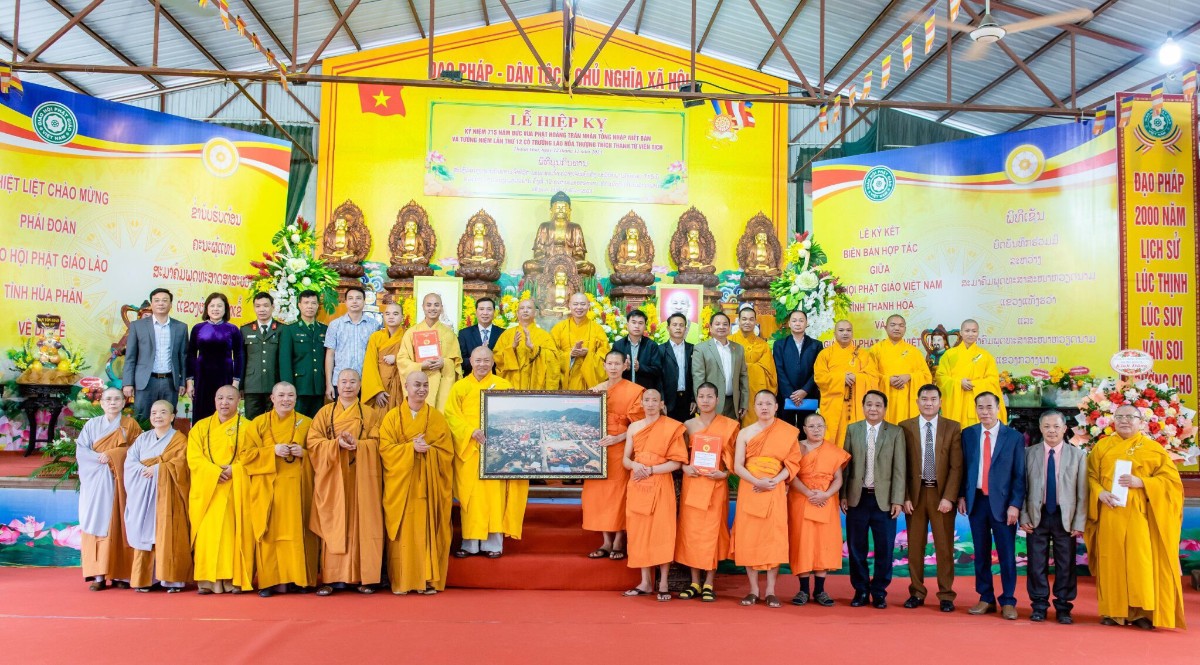 Tiếp đó Phật giáo tỉnh Thanh Hóa và Liên minh GHPG Lào, tỉnh Hủa Phăn đã trao bản ghi nhớ hợp tác giữa 2 tỉnh được ký ngày 25/11/2023 tại Lào.