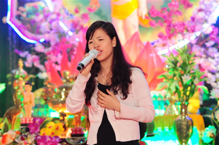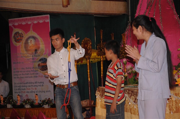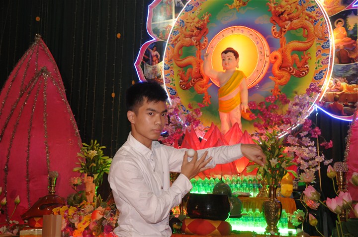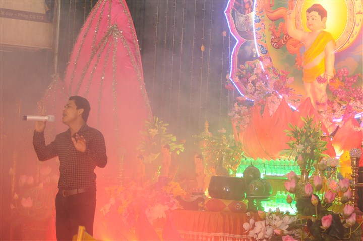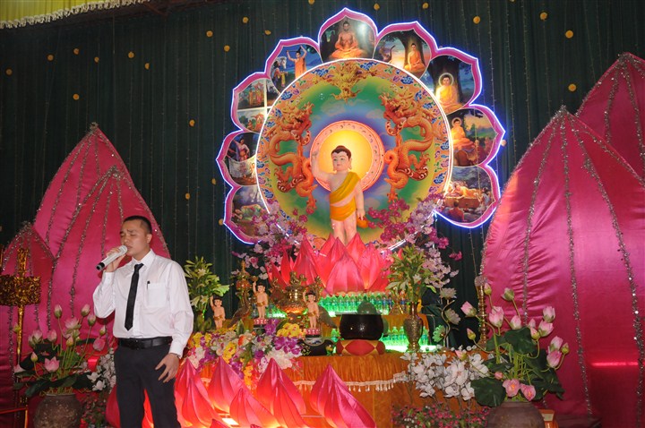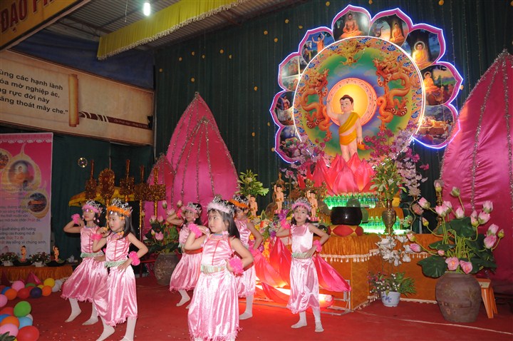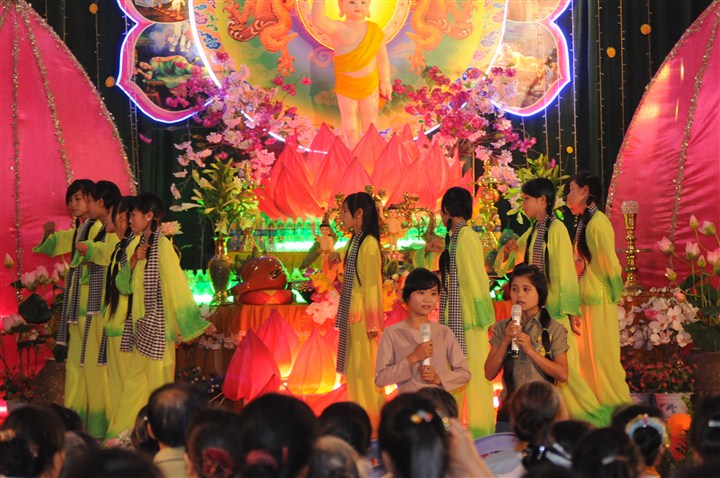 Trước khi lễ tắm Phật và đêm hoa đăng kính mừng đức từ phụ Thích Ca Mâu Ni đản sinh được diễn ra là các tiết mục văn nghệ do các em thanh thiếu niên Phật tử thuộc các trường mầm non, tiểu học, PTCS,  PTTH trên địa bàn huyện trình bày với các ca khúc mang âm hưởng Phật giáo, những ca khúc xôi động ca ngợi công hạnh của đức từ Phụ Thích Ca nhân kỷ niệm 2,638 năm ngày sinh của Ngài.