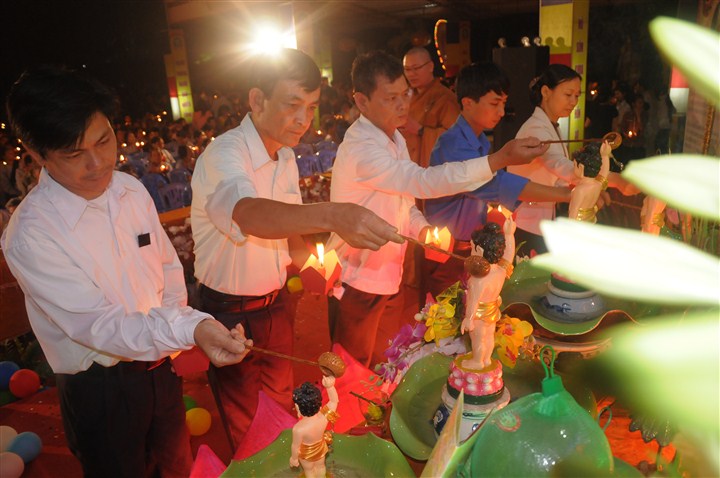 Trước khi kết thúc chương trình là lễ tắm Phật và Đêm hoa đăng cầu nguyện Thế giới hòa bình, vạn dân an lạc trong tiếng niệm danh hiệu đức Bổn Sư Thích Ca Mâu Ni trầm bổng, sâu lắng làm xua tan màn đêm vô minh, tăm tối, đưa chúng ta về với Phật tính vốn có của mình.