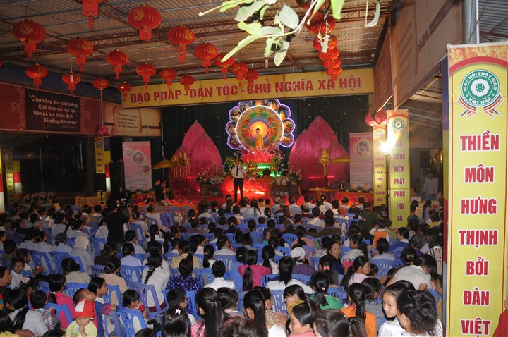 Quang lâm và chứng minh buổi lễ có sự hiện diện của Đại Đức Thích Tánh Khả – Ủy viên Ban thông tin truyền thông GHPGVN, Trưởng Ban trị sự GHPGVN huyện Triệu Sơn, tỉnh Thanh Hóa, ĐĐ. Thích Đạo Quang –  Phó hiệu trưởng trường Trung cấp Phật học tỉnh Khánh Hòa , cùng chư tôn đức Tăng Ni ủy viên Ban trị sự huyện Triệu Sơn, các em thanh thiếu niên Phật tử trong huyện và đông đảo bà con Phật tử gần xa.