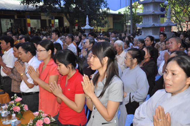 Về phía quan khách có: Bà Trịnh Thị Tiếp – Phó giám đốc Sở nội vụ tỉnh Thanh Hóa; Ông Hà Vũ Thủy – Ủy viên Ban thường trực văn phòng MTTQ tỉnh Thanh Hóa và đại diện các sở ban ngành cấp tỉnh, thành phố, phường Trường Thi, phường Nam Ngạn – Thanh Hóa cùng đông đảo tín đồ Phật tử trong tỉnh về tham dự.