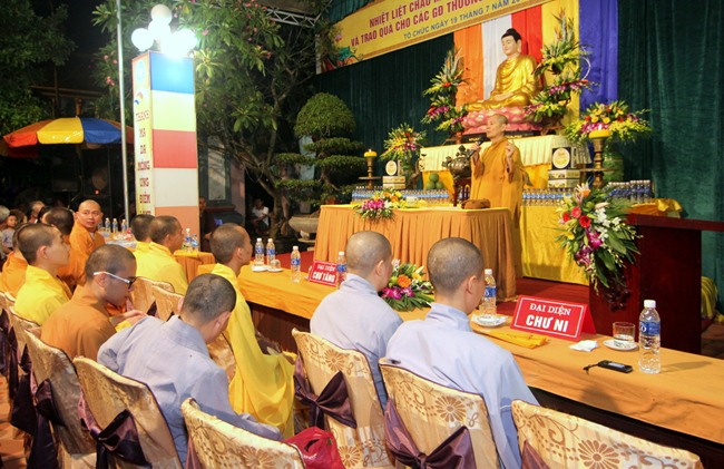 Đến chứng minh và tham dự Lễ trao quà có: TT Thích Tâm Đức – UV HĐTS – TrưởngBTS PG tỉnh Thanh Hóa; TT Thích Chân Quang – Phó Ban Kinh tế Tài chánh TW GHPGVN; cùng Chư tôn đức Tăng Ni trong tỉnh.