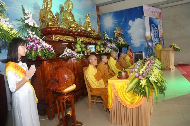 Đúng 9h00′ chính thức cử hành đại lễ Vu Lan PL 2562 – DL 2018. Sau Hồi chuông trống Bát Nhã cung nghinh với tiếng niệm Phật của đại chúng dưới sự hướng dẫn của thầy Thích Tâm Hoạt,..bắt đầu với nghi thức dâng lục cúng của các bạn thanh thiếu niên Phật tử thực hiện, tiếp theo là nghi thức cài hoa hồng. Đặc biệt, là lễ tri ân cha mẹ của Đại đức trụ trì cùng 20 Phật tử đại diện. Sau đó hàng Phật tử tại gia đã sắm sanh các phẩm vật để dâng lên chư tăng hiền tiền sau ba tháng an cư qua lời tác bạch dâng y của Phật tử Liên Anh. Đại diện cho Chư tăng hiện tiền đại đức trụ trì đã nạp thọ phẩm vật cũng như có những đôi lời huấn thị chia sẽ. Qua lời huấn thị, Đại đức đã nói lên mục đích và ý nghĩa của ngày Vu Lan. Bên cạnh đó, cũng nhắc nhở Phật tử phải ý thức về ân đức lớn lao của cha mẹ và gợi nhớ đến trách nhiệm và bổn phận của mỗi người cần phụng dưỡng và đáp đền. Cuối buổi lễ là nghi thức cúng cơm cho các vong linh Cửu Huyền Thất Tổ, Anh Linh Chiến Sỹ, Đồng Bào Tử Nạn và Thai Nhi Sản Nạn. Buổi chiều cùng ngày, Đại đức trụ trì Thích Tâm Hưng tổ chức buổi quy y Tam bảo và truyền ngũ giới cho gần 200 thiện nam tín nữ và nghi thức cúng mong sơn thí thực và phát gần 50 xuất quà cho Phật tử và bà con khó khăn và neo đơn trong địa bàn huyện trị giá mỗi xuất hơn 200nghìn/ xuất quà.