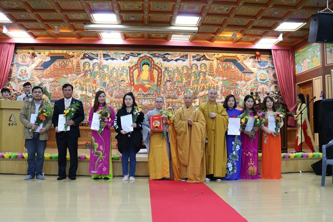 Buổi lễ kết thúc với nghi thức dâng hương, hoa đăng và Chư tôn đức tăng già Phật giáo Việt – Hàn, kiều bào, cộng đồng Phật tử Việt Nam tụng Bát Nhã Tâm Kinh cầu nguyện phúc đức cát tường tân niên, an lạc thịnh đạt đến với mọi người, cầu siêu chư vị anh hùng liệt sỹ, đồng bào tử nạn chiến tranh được siêu sinh lạc quốc.
