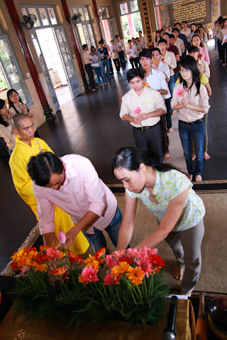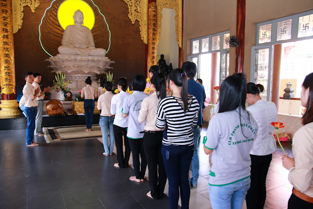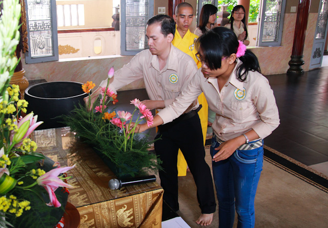 Nhân ngày sinh hoạt đầu năm, sau khóa tu tụng kinh, đãnh lễ Phật và thiền hành. Các bạn trẻ đã lấy cho mình những cành hoa tươi nhất để dâng lên cúng dường Đức Phật. Đây là một hoạt động thường niêm được duy trì trong nhiều năm của CLB khi bước sang một năm mới, vừa tỏ bày lòng tôn kính đối với Đức Thế Tôn cũng như gieo nhân duyên tốt và phước lành cho tự thân.