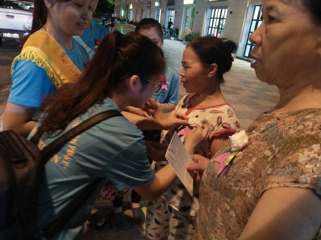 Nhiều người dân rất xúc động khi nghe các bạn trẻ nói về ý nghĩa ngày Vu Lan và cài hoa hồng, hoài niệm về những công ơn cha mẹ. Sau đó, các bạn trẻ đã cài hoa hồng và gửi tặng thông điệp mùa Vu Lan gửi tặng bà con nhân dân TP.Thái Bình trong niềm cảm thương dâng trào về người cha, người mẹ khả kính.