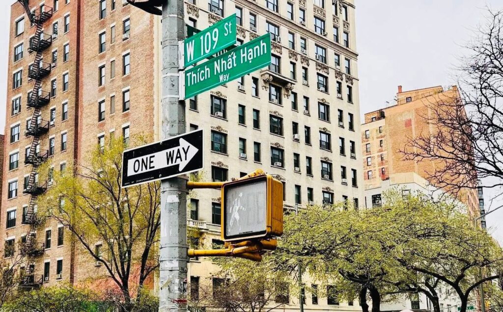 Thích Nhất Hạnh Way, tọa lạc tại góc phố Broadway và West 109, được đặt tên một cách tượng trưng để vinh danh nhà sư Phật giáo Việt Nam có ảnh hưởng, người đã viên tịch ở tuổi 95 vào năm 2022.