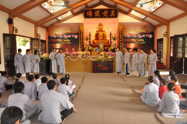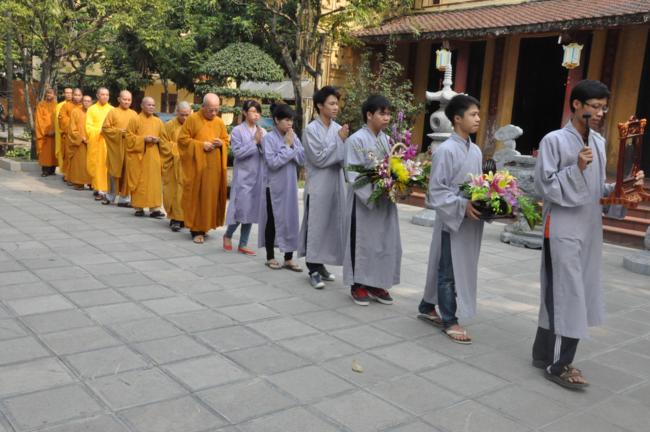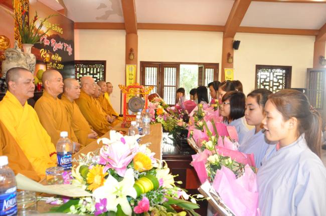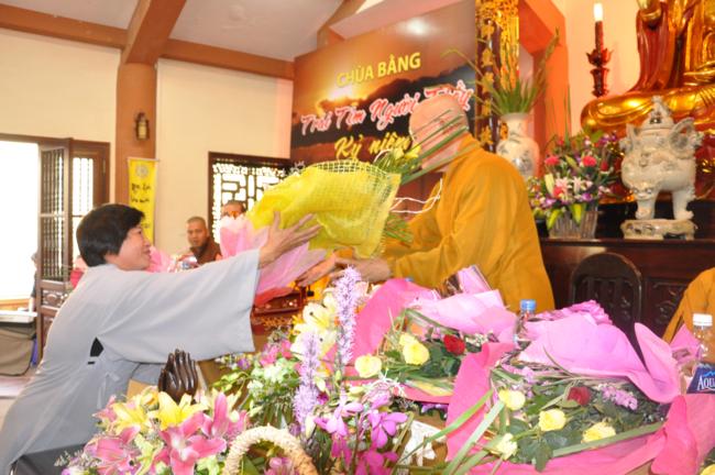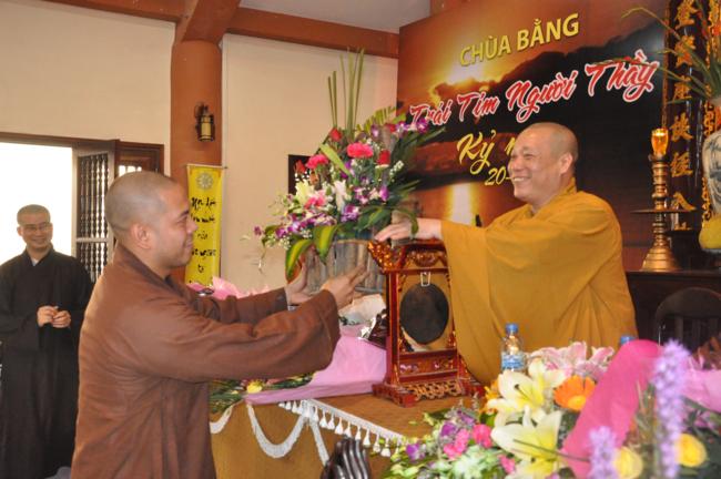 Trong buổi lễ, hơn 100 thanh thiếu niên Phật tử tại lớp giáo lý chùa Bằng cùng gần 100 bạn sinh viên tình nguyện của câu lạc bộ tình nguyện Mùa Hè Xanh và câu lạc bộ IGO đại học FPT đã dâng tặng lên Chư Tôn Đức những bó hoa tươi thắm thể hiện lòng thành kính tri ân đối với bậc thầy khả kính.