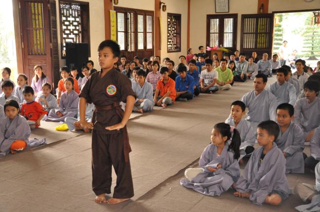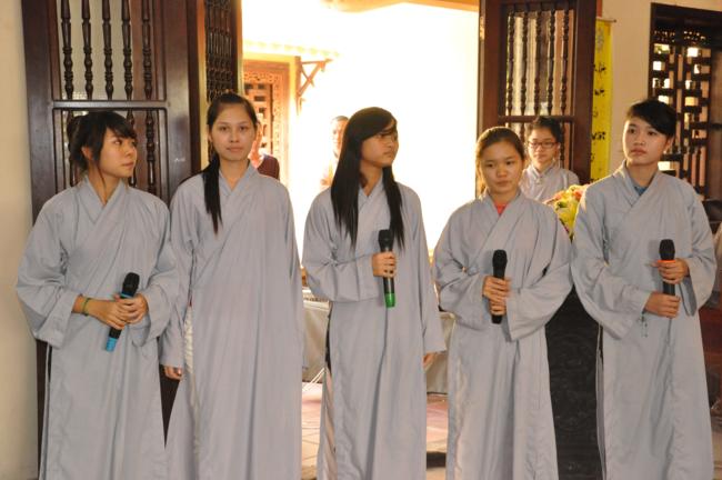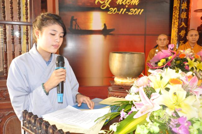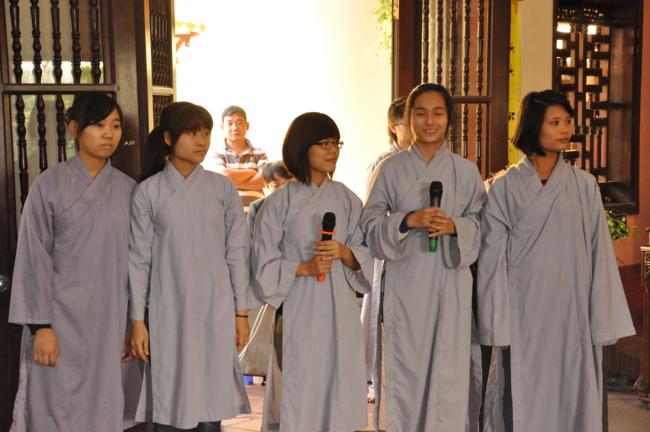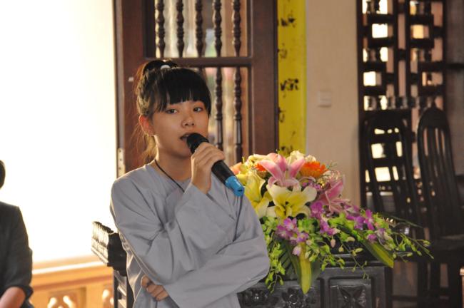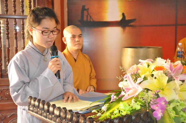 Sau đó, đại diện lớp học giáo lý đã báo cáo quá trình tu học trong 3 năm của Câu lạc bộ thanh thiếu niên Phật tử chùa Bằng kính trình lên Chư Tôn Đức liễu tri, qua đó thể hiện mong muốn đạt được kết quả cao hơn nữa từ những kinh nghiệm tu học của Chư Tôn Đức.