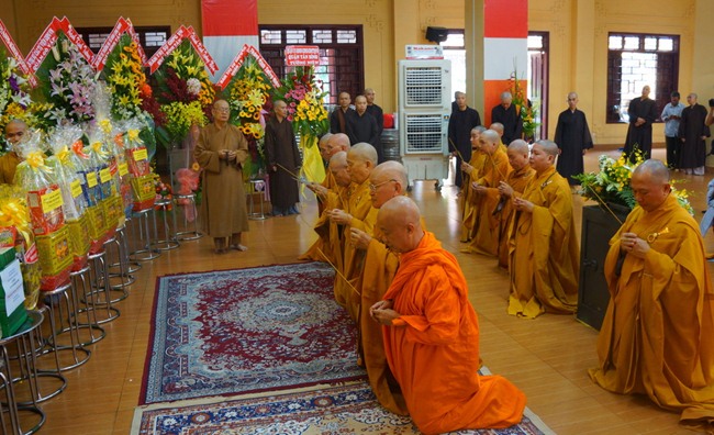 Tiếp đó, các phái đoàn đến trước linh đài dâng hương bày tỏ lòng tri ân, cảm niệm những đóng góp to lớn của cố Đại lão HT.Thích Thiện Hào, cùng chư tôn thiền đức tiền bối hữu công đối với đạo pháp và dân tộc.
