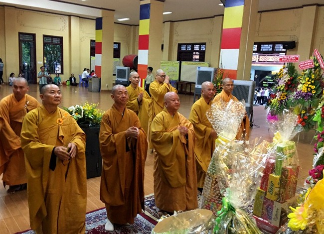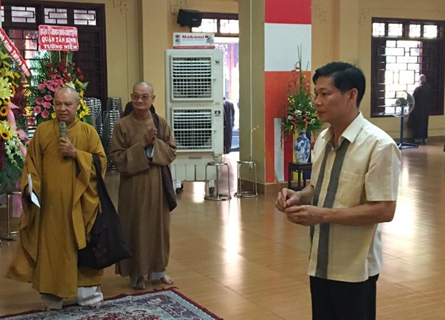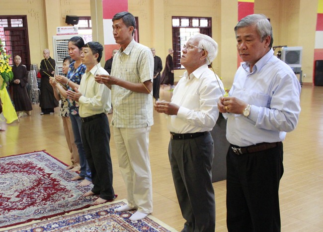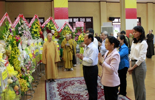 Cùng ngày, Ban tổ chức cũng tiếp đón các phái đoàn của Chư tôn đức Trung Ương GHPGVN, BTS GHPGVN 24 quận/huyện cũng về dâng hương tưởng niệm.