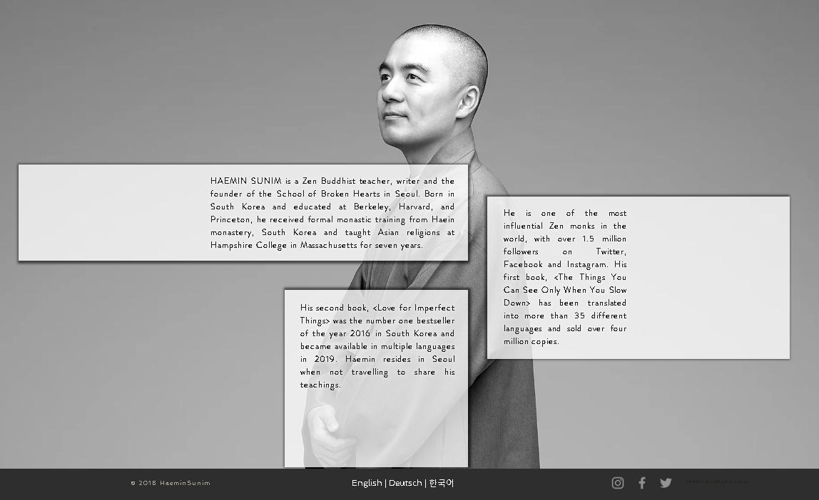 Có thể nói, thầy Haemin Sunim được xem là một trong những tu sĩ trẻ năng động, có đạo tâm, được vinh danh là một trong “300 nhà lãnh đạo hàng đầu của thế hệ mới” Hàn Quốc.
