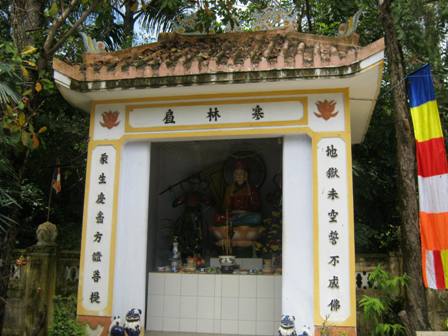 Trong khuôn viên chùa còn có Miếu Ông Thạch thờ một tượng đá xanh, điêu khắc phần âm dương nam, nữ (Yoni và Linga), đây là phiến đá cổ đã vài thế kỷ của người Chăm để lại với diện tích khoảng 1m2. Phần Linga nổi hẳn lên trên, phần Yoni khắc chìm xuống dưới rất khéo léo. Phiến đá Ông Thạch được thờ không chỉ như một tín ngưỡng mà còn là một tác phẩm điêu khắc nghệ thuật.