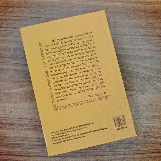 Với những ai muốn cải thiện và xây dựng mối quan hệ tốt đẹp hơn, có lẽ cuốn sách này sẽ là món quà tuyệt diệu mà Trung tâm Biên phiên dịch Tư liệu Phật giáo Quốc tế Vĩnh Nghiêm nói chung, và Đại đức Thích Nguyên Tú nói riêng, muốn gửi tặng cho những người con Phật nhân mùa Phật Đản Phật lịch 2566. Thật sự biết ơn những nhân duyên tốt đẹp đã giúp người trẻ tiếp cận với những tác phẩm Phật giáo chứa đựng tính ứng dụng cao như thế này. Và thật sự, tôi rất muốn lan tỏa nội dung cuốn Thiền Rải Tâm Từ: Nghệ thuật nuôi dưỡng hạnh phúc đến với tất cả mọi người.