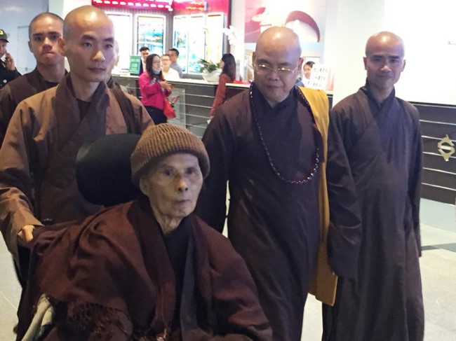 Sư ông Nhất Hạnh tại Sân bay Đà Nẵng – Ảnh: Nguyên Hà