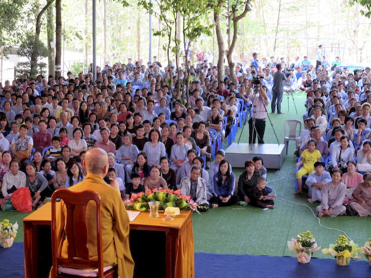 Nhân đây, Thượng tọa kêu gọi mọi người đừng bao giờ chấp nhận cuộc sống bình thường với điều thiện nho nhỏ. Khi chưa biết Phật pháp thì thôi, nhưng đã làm một con người đầy đủ căn lành, có duyên biết Phật pháp thì phấn đấu làm sao trong đời mình, phải vươn lên đạt được những điều thiện hoàn hảo.