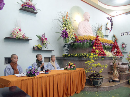 Lại nữa, đêm mùng 3 tết, cũng vẫn chương trình đàm đạo giáo lý do 4 nhóm Tăng Ni khác thực hiện với sự tham dự ủng hộ tinh thần của đông đảo Phật tử. Mỗi nhóm trình bày một đề tài đạo lý. Qua đó, các vị Tăng Ni trẻ mới xuất gia được dịp xác định vị thế và trách nhiệm của mình trong thời đại mới là gì, để rồi tự nỗ lực phấn đấu tu hành.Với người biết tự đốc thúc bản thân thì khó khăn nào cũng vượt