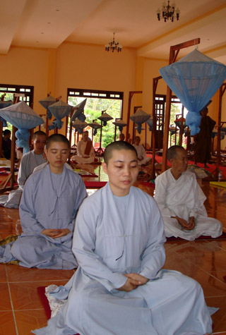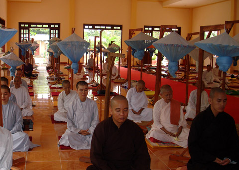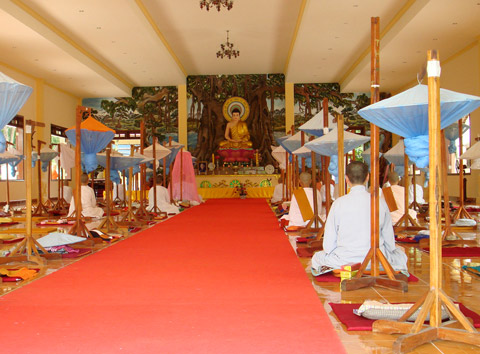 Chư tăng trong chùa gồm 200 vị tu tập theo tư tưởng Phật giáo Nam tông. Chư tăng trong thiền viện an cư tại chỗ, Lễ nhập hạ vào ngày 16 tháng 6 âm lịch, lễ ra hạ vào ngày 15 tháng 9. Đặc biệt, thiền viện có đại lễ dâng Y Kathina vào ngày 12 tháng 4 âm lịch hàng năm. Mỗi tháng có 2 khoá tu thiền (từ ngày 2 tháng 8 âm lịch và từ 16 đến 22 âm lịch) do thượng toạ Thích Bửu Chánh giảng dạy.