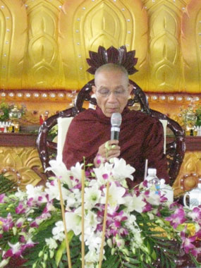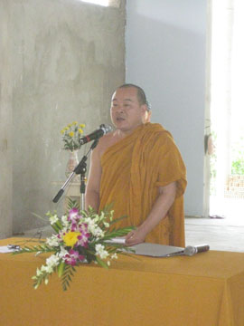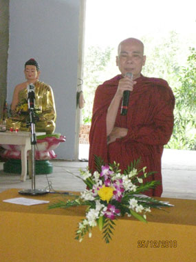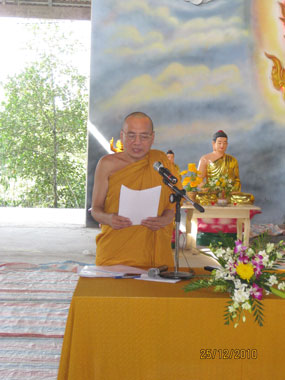 Hình 5: TT Bửu Chánh đọc nội dung giấy phép, nội quy khóa thiền và thời khóa biểu tu tập