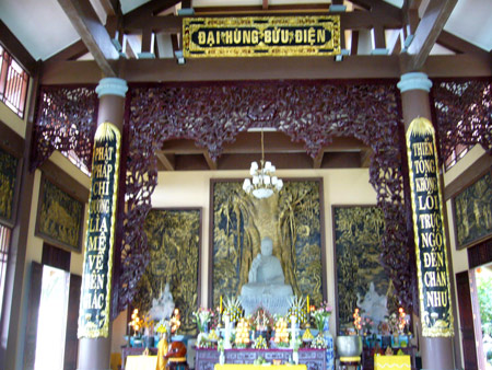 Đặt chút lễ lên bàn thờ Phật, chắp tay, cúi đầu trước đấng tối cao độ lượng từ bi như một lời chào, lời xin phép với đức Phật, rồi ta có thể thăm quan, ngoạn cảnh. Trong gian Đại Hùng Bửu điện thờ Phât, ngòai đại tượng Phật uy nghiêm chính giữa gian, là 11 bức tranh đồng kể về những giai đoạn trong cuộc đời của Phật, từ lúc Phật đản tới khi Phật tu thành chính quả và tới tận lúc Phật nhập niết bàn. Chiêm ngưỡng những bức tranh này, không thể không muốn hiểu, hiểu rồi không thể không nhớ, và nhớ rồi không thể không ngưỡng mộ trước một đấng tối cao mà câu chuyện về ngài đã đem lại sự bình yên trong tâm hồn cho biết bao người.