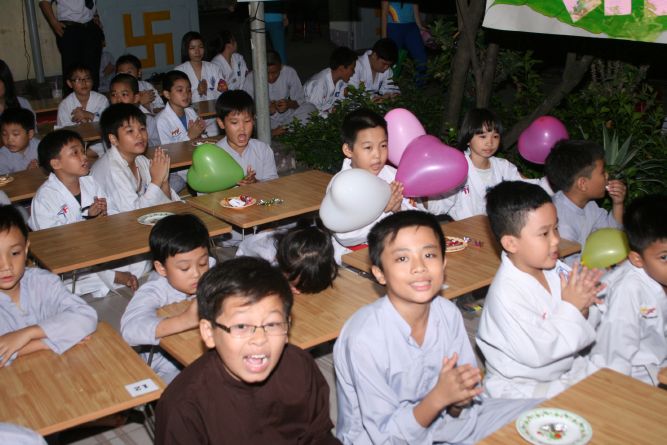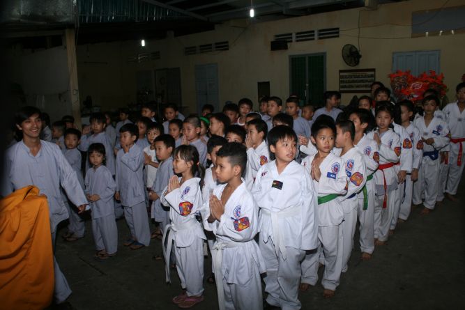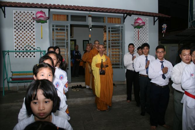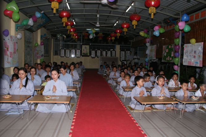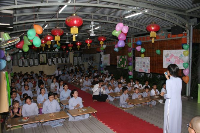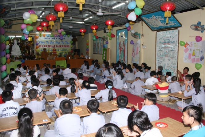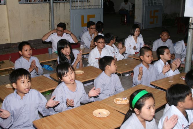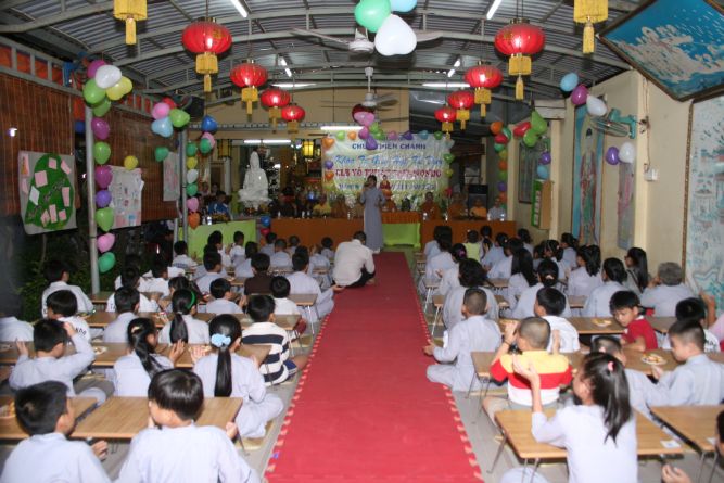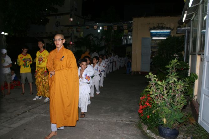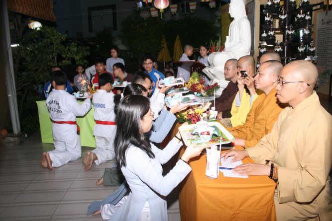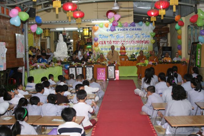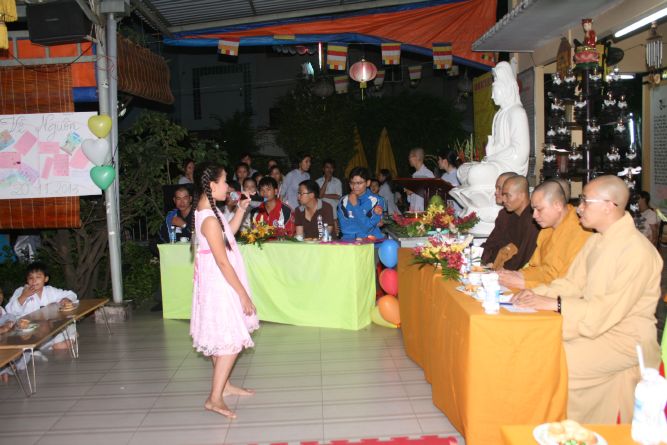 Nếu như ngày 15/11 vừa qua, cũng tại ngôi chùa Thiên Chánh nhỏ bé thân thương này đã diễn ra lễ 20/11 của lớp giáo lý dành cho những bậc ân sư của mình, thì đêm nay, cũng tại ngôi chùa này, một lần nữa đại lễ tri ân quý thầy, quý sư cô nhân ngày nhà giáo được tổ chức trọng thể để hoài niệm về những ông lái đò tận tụy với đàn em, đó là buổi lễ rất ấm cúng do các em thanh thiếu niên khóa tu “Gieo hạt từ tâm” và CLB võ Thuật Teakwondo thực hiện.