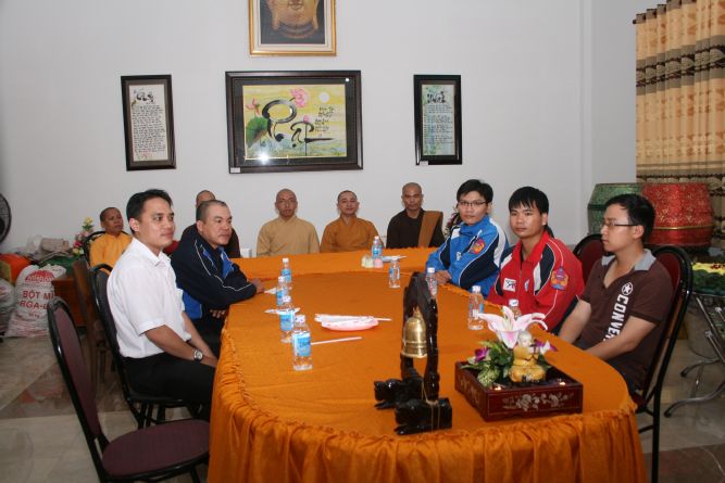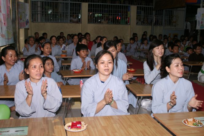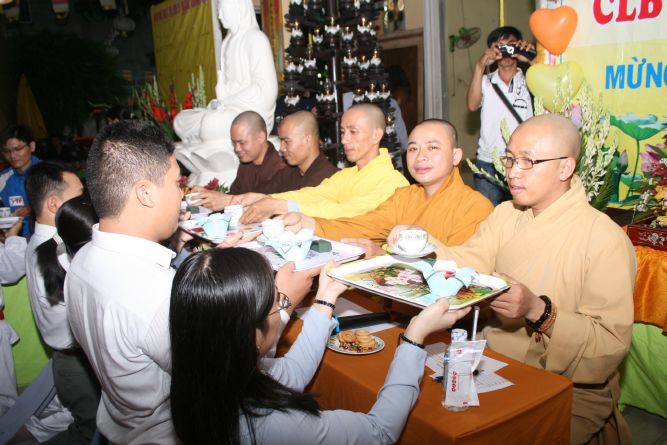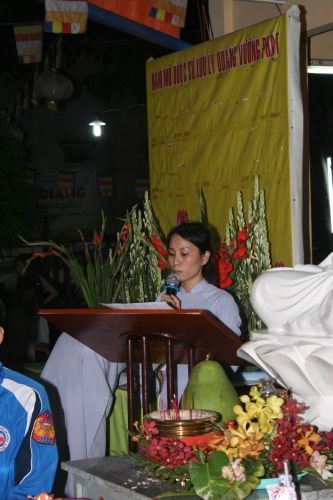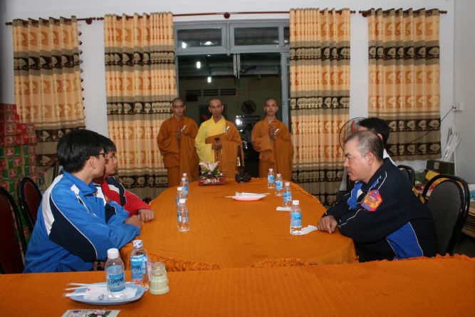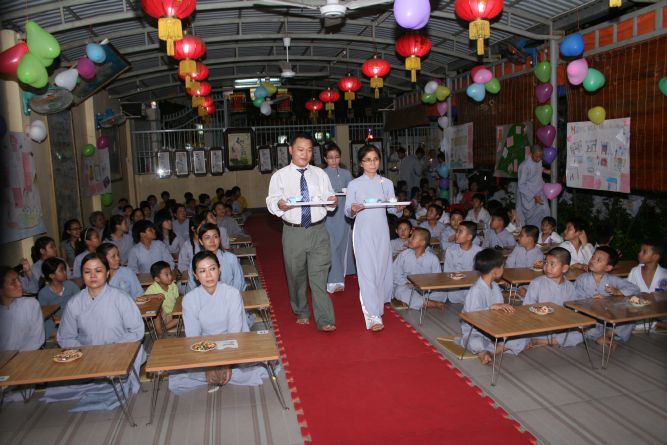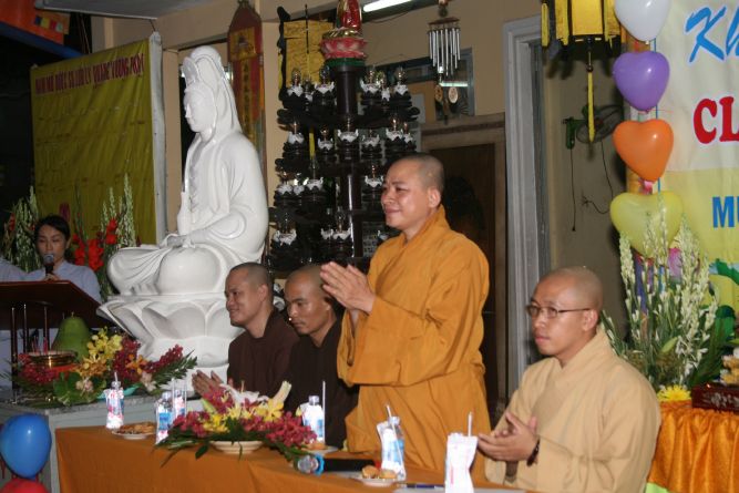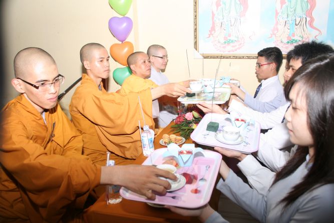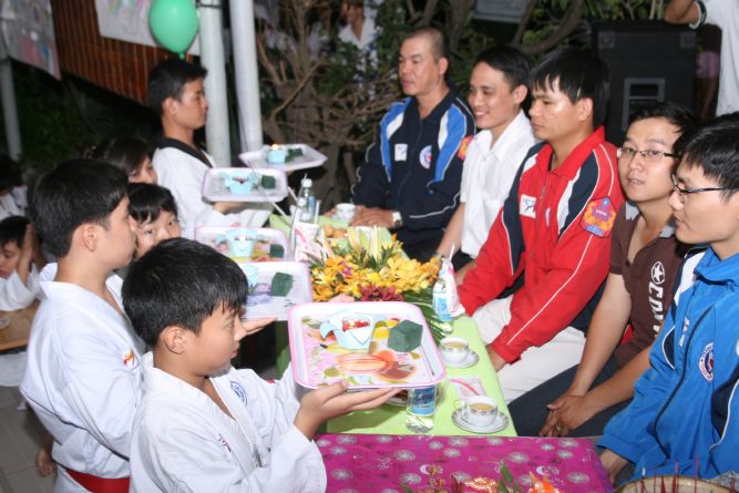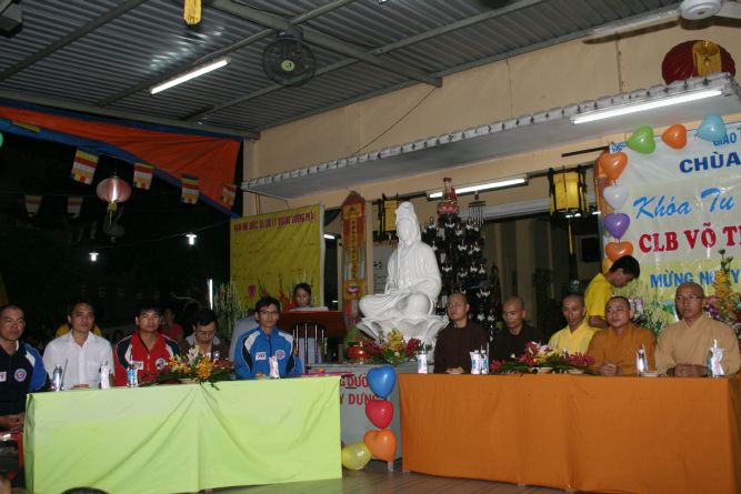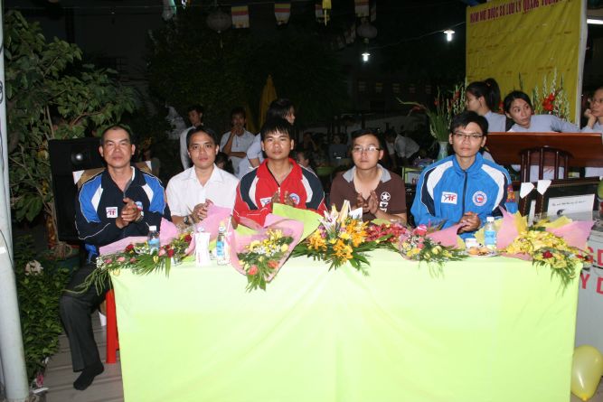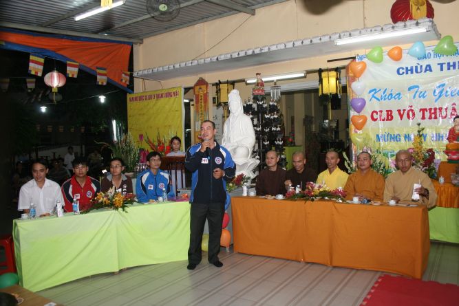 Khi lời tri ân vừa dứt, đại diện hai lớp dâng những chén trà thơm lên chư tôn thiền đức tăng ni, như tấm chân tình mà bao thế hệ học trò muốn dâng tặng. Thầy giáo Nguyễn Thanh Tùng, trưởng bộ môn võ thuật Teakwondo trong lời phát biểu của mình đã tri ân ĐĐ. Thích Quảng Tiến, người gieo những hạt giống tốt để thầy tiếp xúc với Phật pháp và có cơ hội phụng sự, giúp đở các tu sinh.
