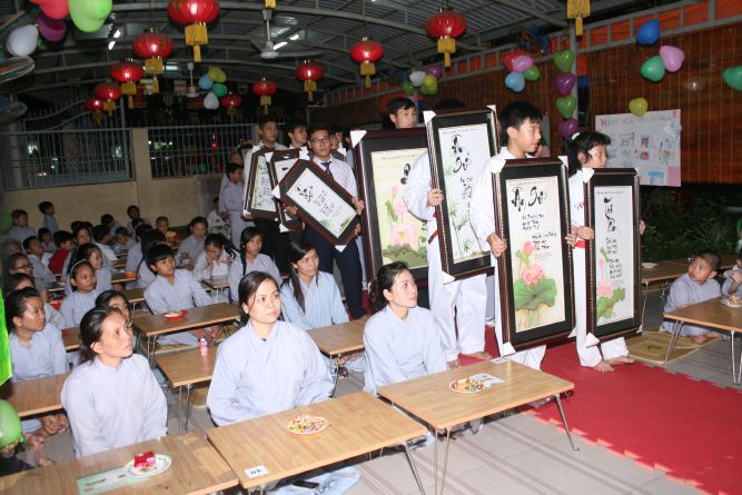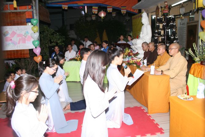 Tu sinh Chánh Tiên đại diện cho hai lớp thanh thiếu niên dâng lời tri ân: “Chúng con cảm thấy mình thật may mắn khi trong cuộc đời chúng con có rất nhiều, rất nhiều những người thầy, người cô, những người lái đò âm thầm lặng lẽ chở chúng con qua những con sông trong cuộc đời mình, trao cho chúng con những bài học, kinh nghiệm, giá trị của tình thương vô giá, dạy cho chúng con khôn lớn. Thầt vĩ đại biết bao nhiêu, chúng con muốn nói lời cám ơn thật nhiều vì tình yêu thương, sự che chở của quý thầy cô, nhưng lời chúng con làm sao kể hết những ân tình…