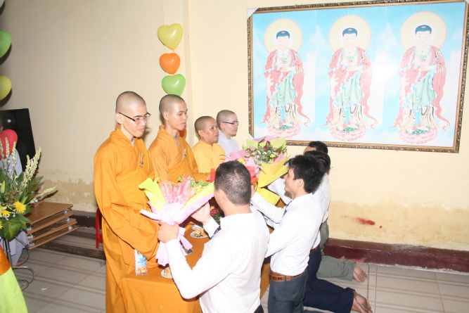 Cảm động hơn, thiêng liêng hơn là giây phút những đóa hoa tươi thắm dâng lên quý thầy cô, những món quà mang nặng nghĩa tri ân cũng được trân trọng nâng niu như chính tấm lòng mà các tu sinh muốn gửi đến những bậc thầy vĩ đại nhất trong cuộc đời của mình.
