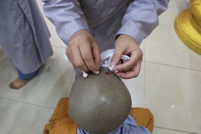 Những liều hương được đốt trên đầu của Giới tử, Chư Tôn đức Tăng Ni trong Ban Hộ đàn đã làm việc rất nghiêm túc, tạo sự trang nghiêm, an toàn và giữ thanh tịnh tuyệt đối suốt thời gian đốt liều cho giới sinh. Lễ Tấn hương nhờ đó được thực hiện thành tựu viên mãn, tạo niềm tin chân chánh cho tất cả những người tham dự.
