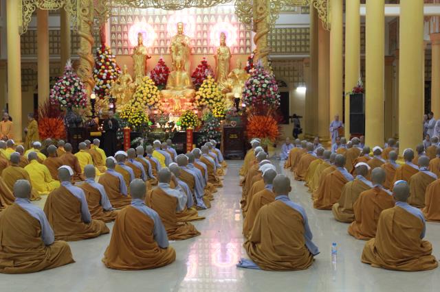 Theo đó, chuông trống Bát Nhã liên hồi trổi dài âm vang chấn động cả núi rừng như gửi trao tâm niệm cao cả của những con người phát chí nguyện của bậc đại sĩ xuất trần. Thần Chú Đại Bi liên tục ngân vang, trời Đại Tòng Lâm như chìm trong cảnh Phật, khung cảnh trang nghiêm, hùng tráng để đón mừng những vị Bồ-tát phát nguyện hiến thân đời mình cho Phật pháp, nhân sinh.
