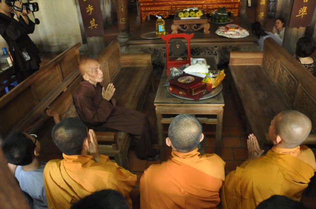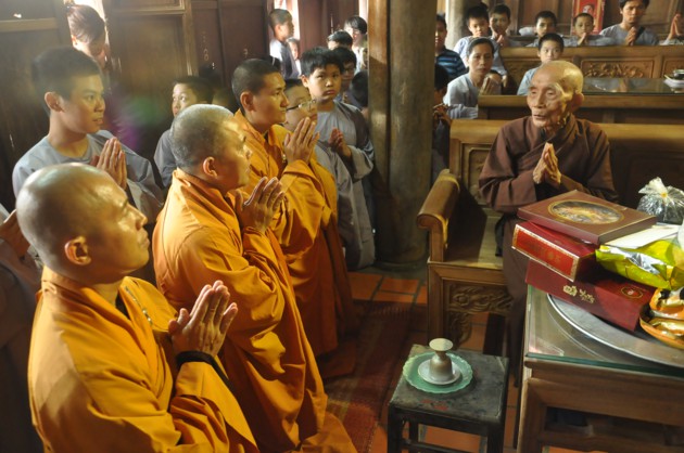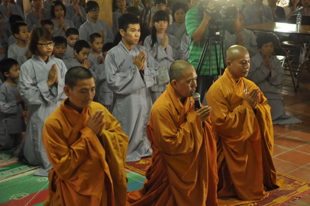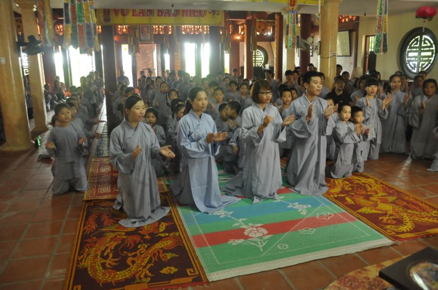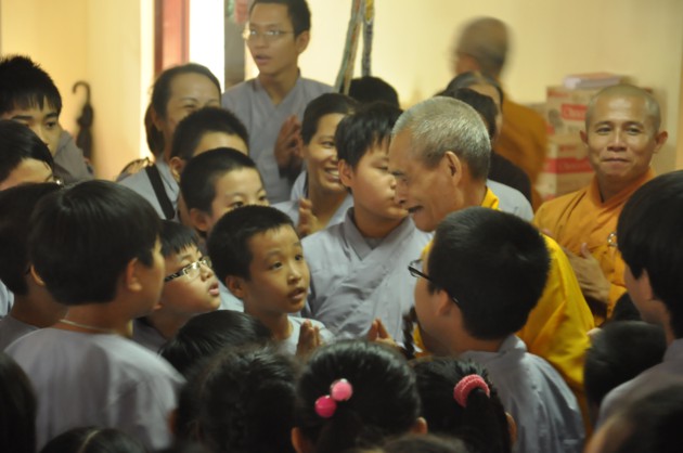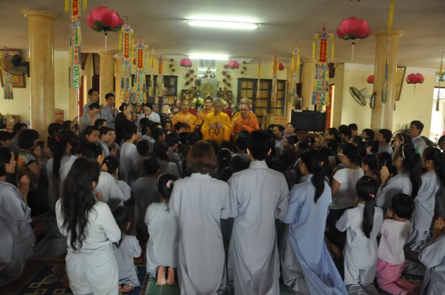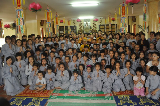 Đúng 7h30, xe bắt đầu lăn bánh, các bạn thiếu nhi theo nhóm đã được chia lên 4 xe, mỗi xe do 2 anh chị phụ trách. Trên xe các bạn thiếu nhi được ca hát, chơi những trò chơi đạo pháp, đường xa càng thêm ngắn lại. 9h thì xe về tới chùa Ráng. Sau khi ổn định đội hình, dưới sự dẫn dắt của quý thầy và anh chị phụ trách, các bạn thiếu nhi đã được đảnh lễ và nghe những lời pháp nhũ ân cần của Đại lão Hòa thượng Pháp chủ. Các quý thầy cùng các con đã pháp nguyện “Y giáo phụng hành”, nguyện làm theo những lời dậy của Đức Pháp chủ cố gắng tinh tấn trên con đường tu tập đạo giác ngộ giải thoát. Riêng các bạn thiếu nhi đã được Hòa thượng dạy bảo một cách ân cần, phải luôn cố gắng là một người con ngoan trò giỏi. Các anh chị huynh trưởng cũng được Hòa thượng sách tấn, là người đi trước phải có trách nhiệm dìu dắt các mầm măng phật pháp vươn lên sao cho xứng đáng với công lao sâu dày các bậc tiền nhân.