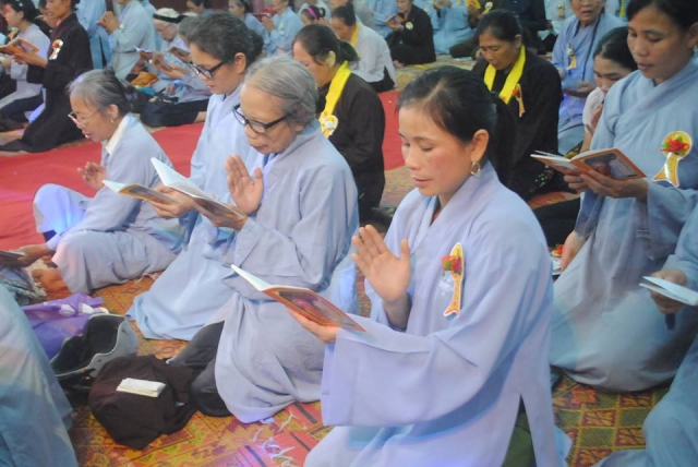 Đại chúng đã trì tụng Kinh Vu lan báo hiếu đẻ nhắc lại lời Đức Phật dạy về gương hiếu hạnh của Đức tôn giả Mục Kiền Liên .