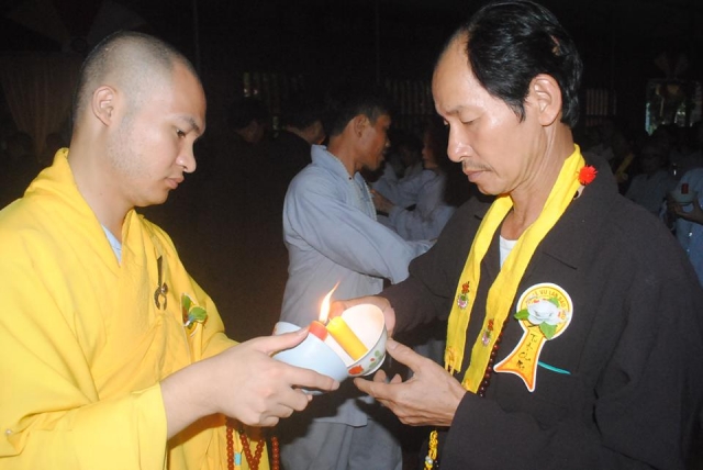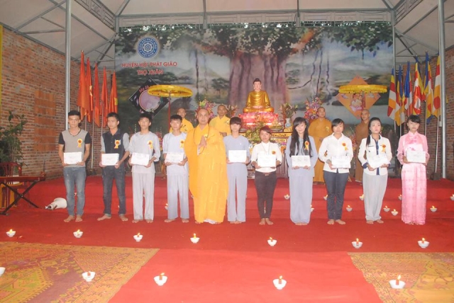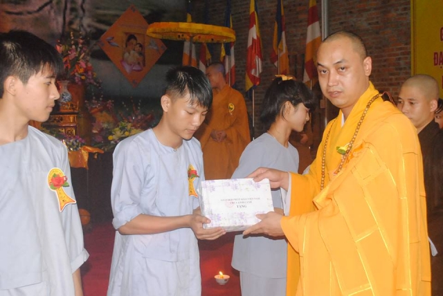 Đến cuối buổi lễ những ngọn nến tri ân được truyền đi mang theo công đức hồi hướng cho tất cả pháp giới chúng sinh. Và những món quà được trao cho những cá nhân xuất sắc trong CLB TTNPT Chùa Linh Cảnh để động viên các em trong năm học tới .