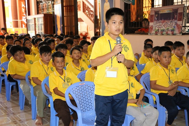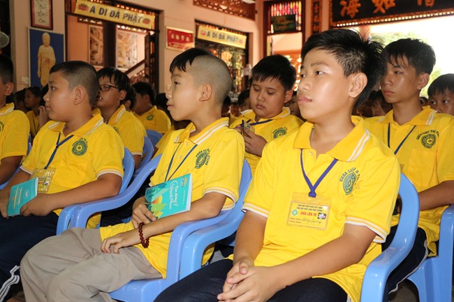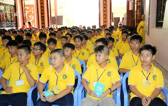 Tất cả các em khóa sinh có mặt tại giảng đường chùa Liên Trì, thị trấn Dầu Tiếng, H.Dầu Tiếng, tỉnh Bình Dương đã lắng đọng tâm tư nghe từng lời pháp thoại của Thượng tọa và Ngài đã chia sẻ cho các em 8 điều tối quan trọng cho sự hình thành và xây dựng đạo đức, nhân phẩm các mầm non của xã hội từ việc đi, đứng, ngồi, nằm, ăn, mặc, nói và hành động.