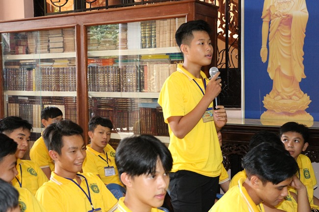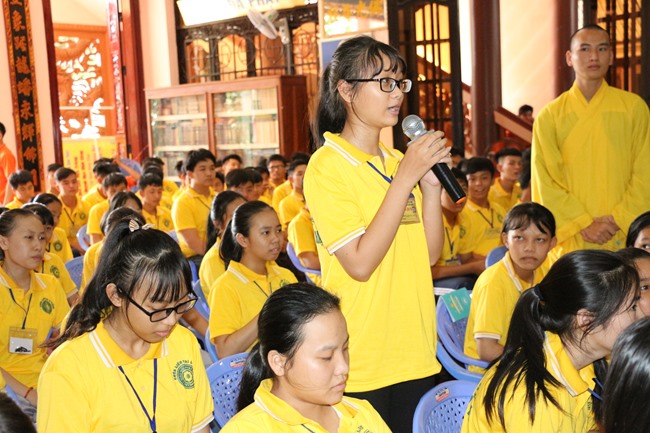 Sau hơn 1 giờ đồng hồ, các bạn khóa sinh cũng đã có những câu hỏi, thắc mắc xung quanh cuộc sống gia đình, bạn bè, học tập và đã được Thượng tọa trả lời dưới góc nhìn thực tế, gần gũi nhưng vô cùng thấm đượm đạo vị, giúp các bạn biết được đâu là đúng sai trong mỗi vấn đề, từ đó rút ra được cách hành xử đúng đắn nhất.