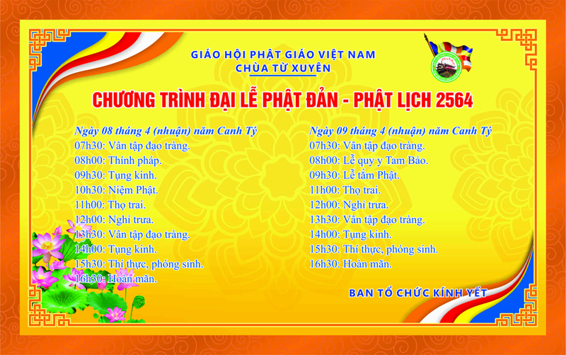 Dự kiến Chương trình Đại lễ Phật đản PL.2564 tại chùa Từ Xuyên