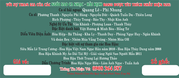 => Thông tin đêm nhạc từ thiện Nụ Cưới Khai Tâm đã diễn ra