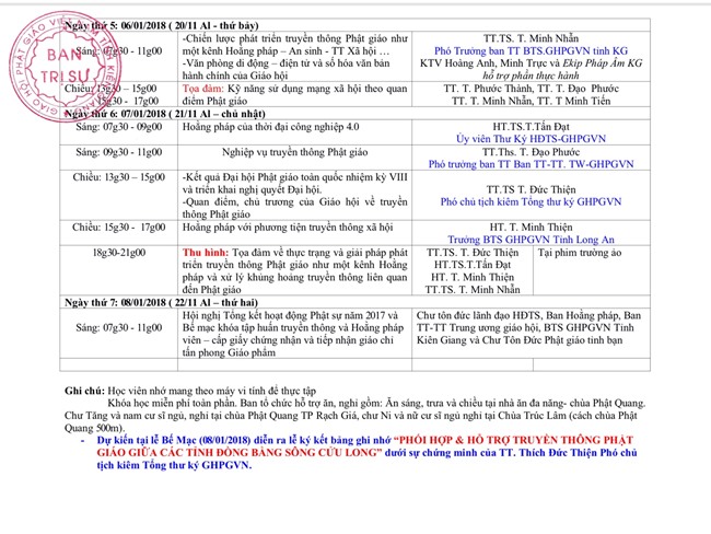 Ban Trị sự GHPGVN tỉnh Kiên Giang phối hợp với Ban Thông tin truyền thông Trung ương giáo hội tổ chức Lớp tập huấn Truyền thông Phật giáo và Nghiệp vụ Thư ký như sau :