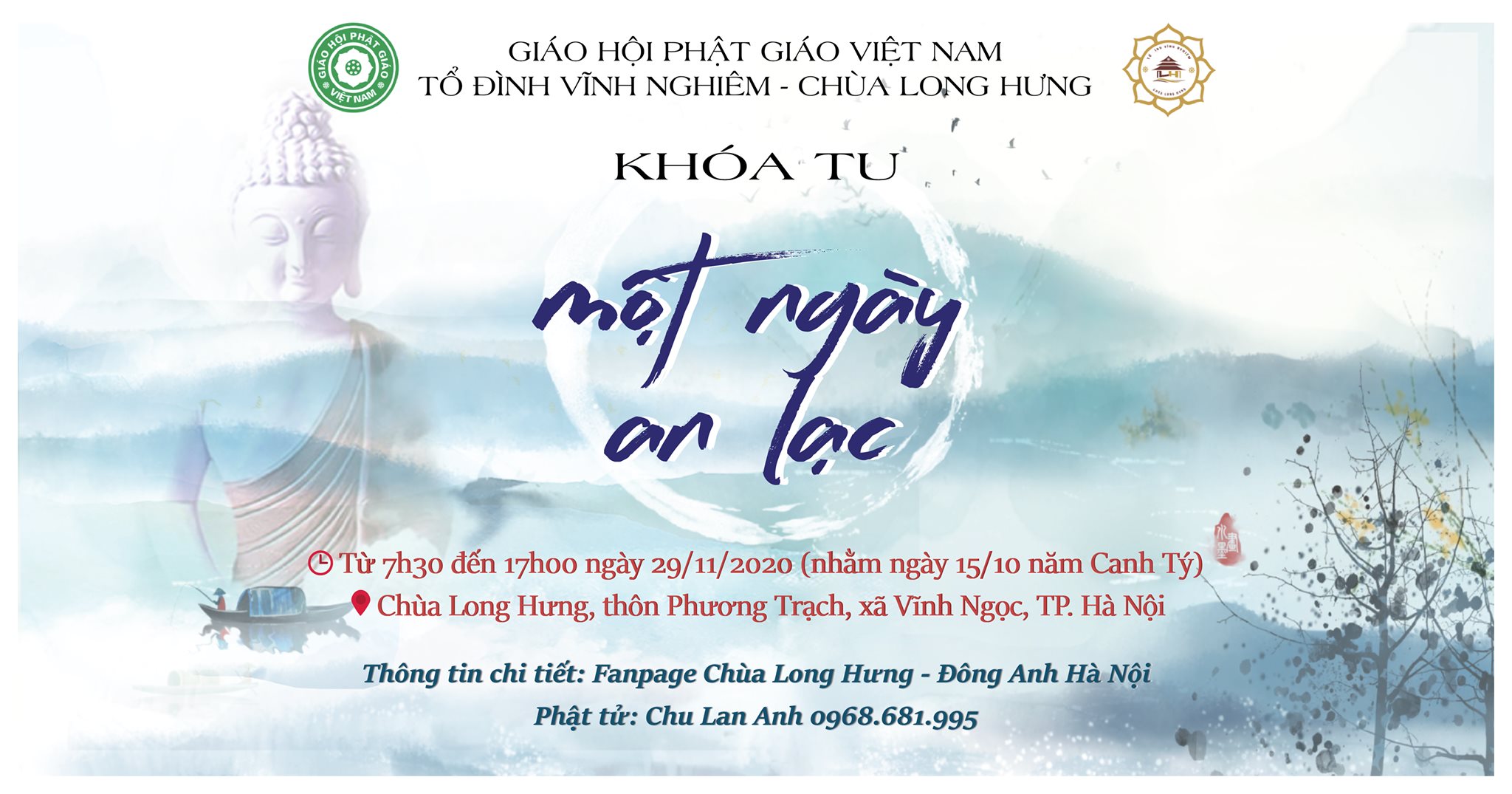 Thông báo cho biết, với mong muốn tạo nên một môi trường tu tập trang nghiêm, thanh tịnh, giúp quý vị Phật tử tinh tiến hơn trên con đường tu tập, có một lộ trình tu đúng chính pháp dưới sự hướng dẫn của quý Chư tôn thiền đức. Chùa Long Hưng sẽ tiếp tục tổ chức khóa tu “Một ngày an lạc” vào tháng 11/ 2020 cho tất cả các đối tượng nam nữ Phật tử.