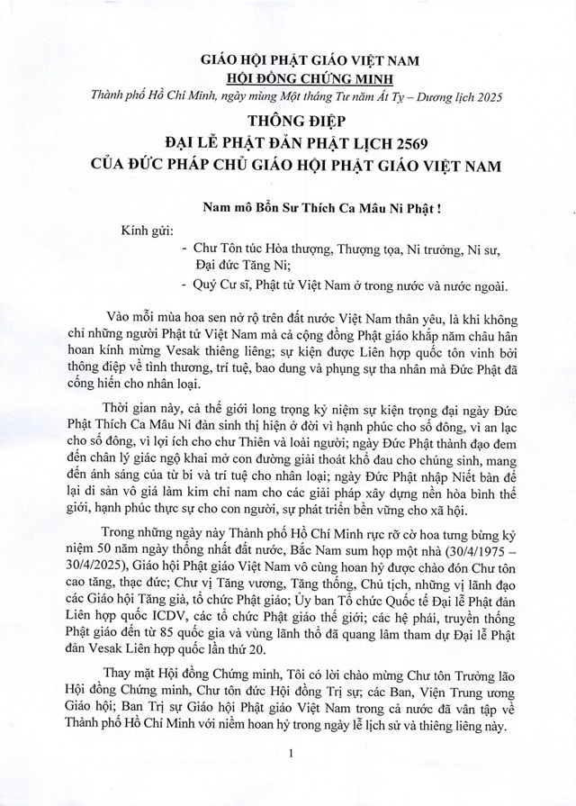 Năm nay là năm có ý nghĩa hết sức to lớn đối với Phật giáo Việt Nam và Dân tộc Việt Nam. Đây là lần đầu tiên Giáo hội Phật giáo Việt Nam tổ chức Đại lễ Vesak Liên Hiệp Quốc tại TP.Hồ Chí Minh nhưng đúng vào dịp nhân dân cả nước tưng bừng kỷ niệm 50 năm ngày thống nhất đất nước, Bắc Nam sum họp một nhà (30-4-1975 – 30-4-2025).