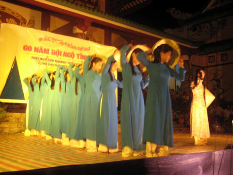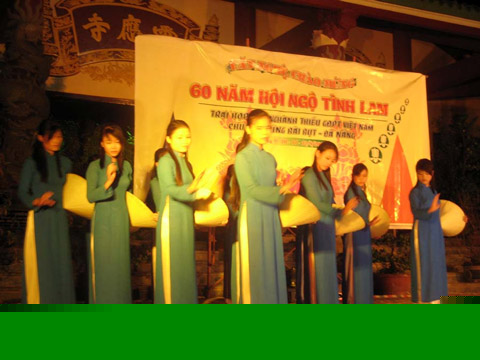 Hồi 20 giờ GĐPT TP Đà Nẵng đã trình diễn buổi văn nghệ chào mừng hội ngộ tình lam 60 năm.
