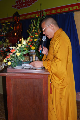 Đại Đức Thích Thanh Thắng thay mặt ban thư ký đọc Báo cáo sơ kết công tác Phật sự 6 tháng đầu năm và nhiệm vụ trọng tâm 6 tháng cuối năm 2008; đồng thời nêu một số kiến nghị đối với công tác Phật sự trong tỉnh.