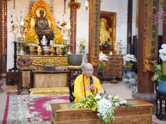 Ông Nguyễn Đức Vang – đại diện cho các Ban ngành đoàn thể của tỉnh phát biểu tán thán công đức và động viên Tăng Ni trong tỉnh cần cố gắng hơn nữa trong công tác Phật sự xã hội.