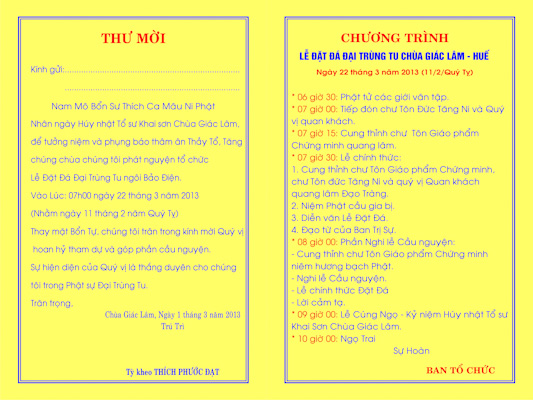 Thư mời: Dự lễ đặt đá đại trùng tu chùa Giác Lâm – Huế
