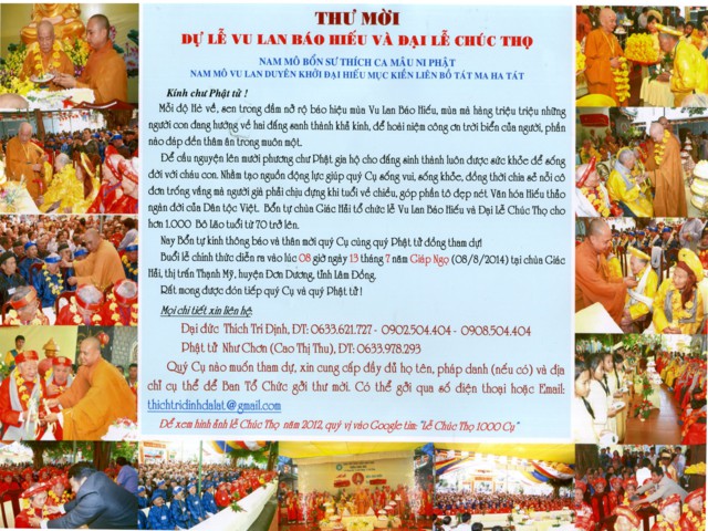 Thư mời dự lễ Vu Lan và Chúc Thọ tại chùa Giác Hải (Lâm Đồng)