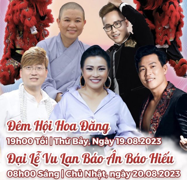 + Đại lễ Vu lan Báo ân Báo hiếu và lễ: “ Bông Hồng Cài Áo” được tổ chức vào hồi 08h00 sáng Chủ nhật ngày 20/08/2023 (nhằm ngày 05/07/Quý Mão).