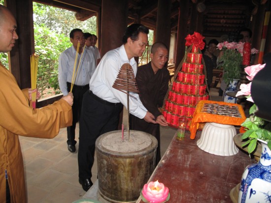 Trang chủ Tin tức Thủ tướng dâng hương, trồng cây tại chùa Phật Tích Tin tức Thủ tướng dâng hương, trồng cây tại chùa Phật Tích Bởi (phattuvietnam.net) - 25 Tháng Năm, 2010 Facebook Twitter Google+ Pinterest WhatsApp Email Print Viber Đồng thời, Thủ tướng đã trồng cây hoa Đại biểu tượng của sự thanh cao, hướng thượng tại chùa Phật Tích, huyện Tiên Du, tỉnh Bắc Ninh. Đây cũng là sự quan tâm của Chính phủ tới công trình di sản văn hóa Phật giáo kỷ niệm 1000 năm Thăng Long – Hà Nội.