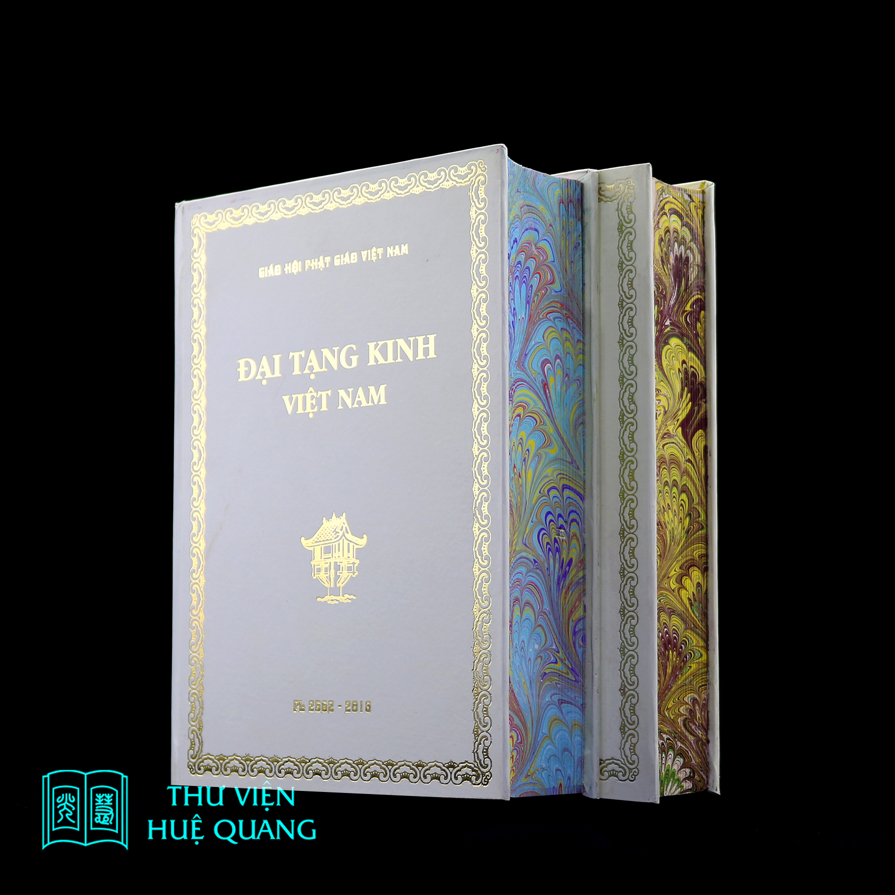 Thư viện Huệ Quang đã dụng công nghiên cứu và áp dụng thành công một số kỹ thuật trang trí mép sách của châu Âu như: mạ vàng cạnh sách, vẽ tranh lên bụng sách (bộ tranh Cuộc đời đức Phật vẽ trên bụng bộ Đại tạng kinh Việt Nam ra mắt năm 2019). Và mới đây nhất, thư viện đã thành công trong việc nhuộm hoa cương 3 cạnh sách.
