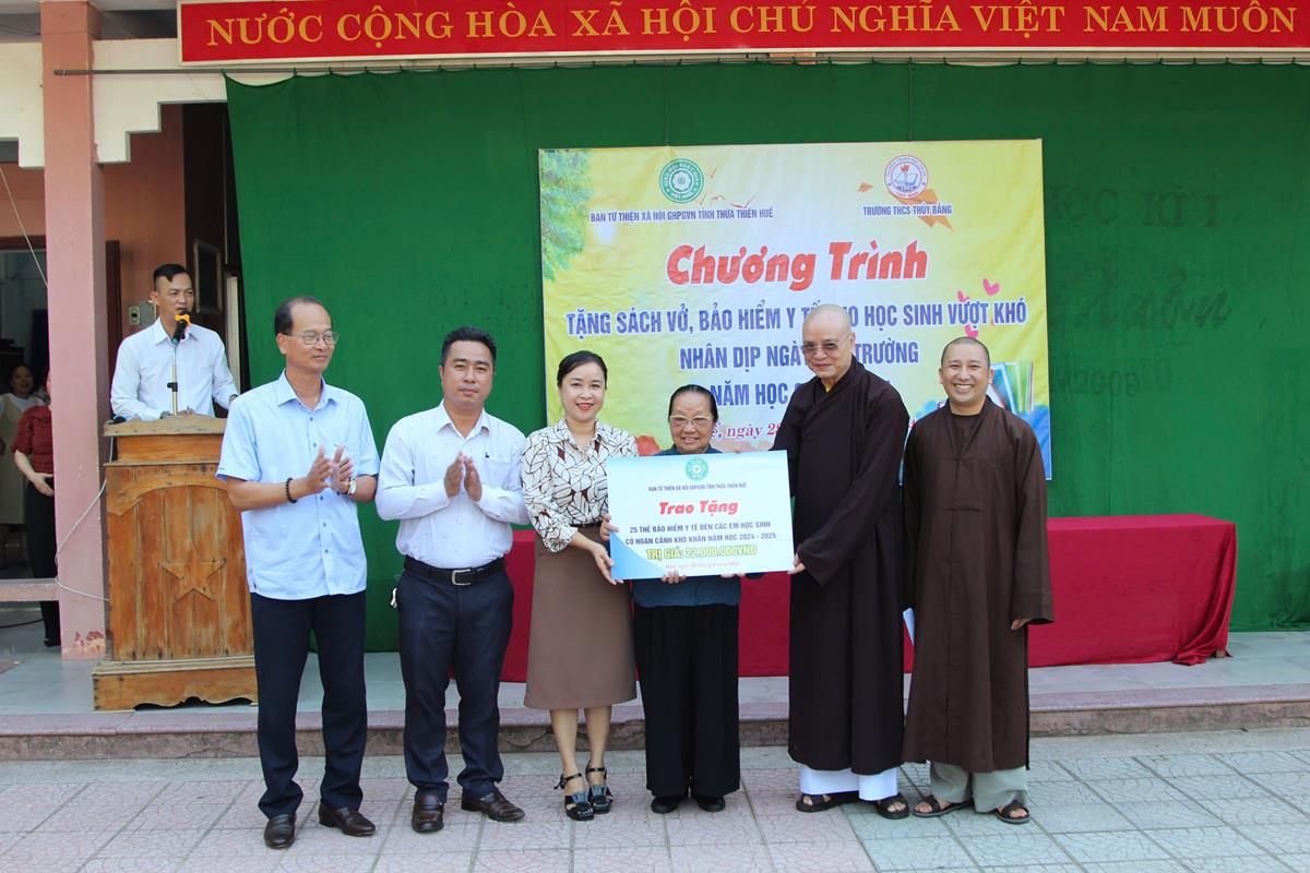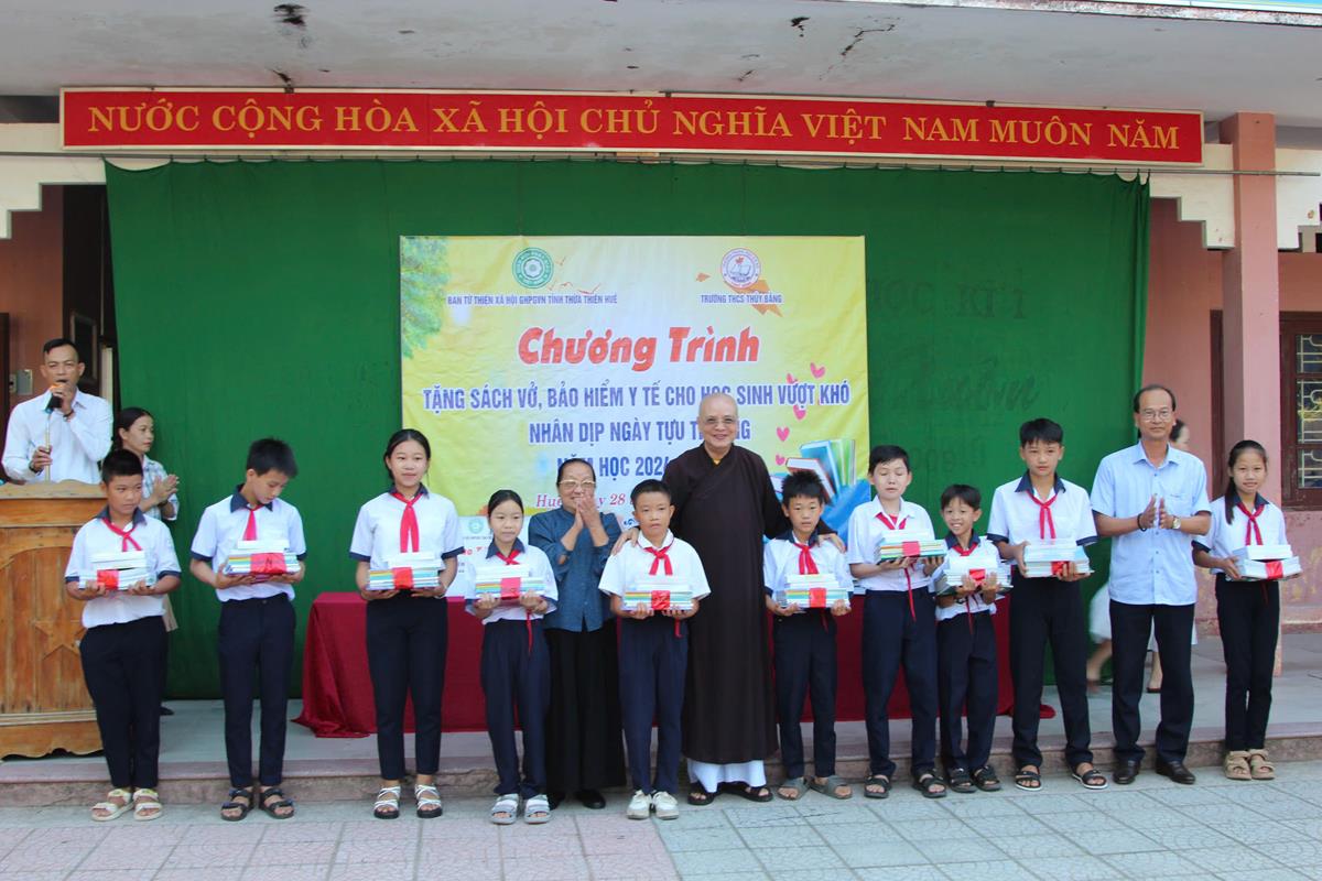 Chương trình diễn ra trong không khí hân hoan, phấn khởi của một năm học mới bắt đầu. Với mong muốn các em học sinh tiếp tục nỗ lực học tập chinh phục tri thức, Ban Từ thiện Xã hội đã trao 50 bộ sách giáo khoa, vở học tập cho 50 em học sinh có hoàn cảnh khó khăn trị giá 25 triệu đồng. Ngoài ra, Ban Từ thiện đã tặng 25 thẻ Bảo hiểm Y tế cho 25 em học sinh trị giá 22 triệu đồng.